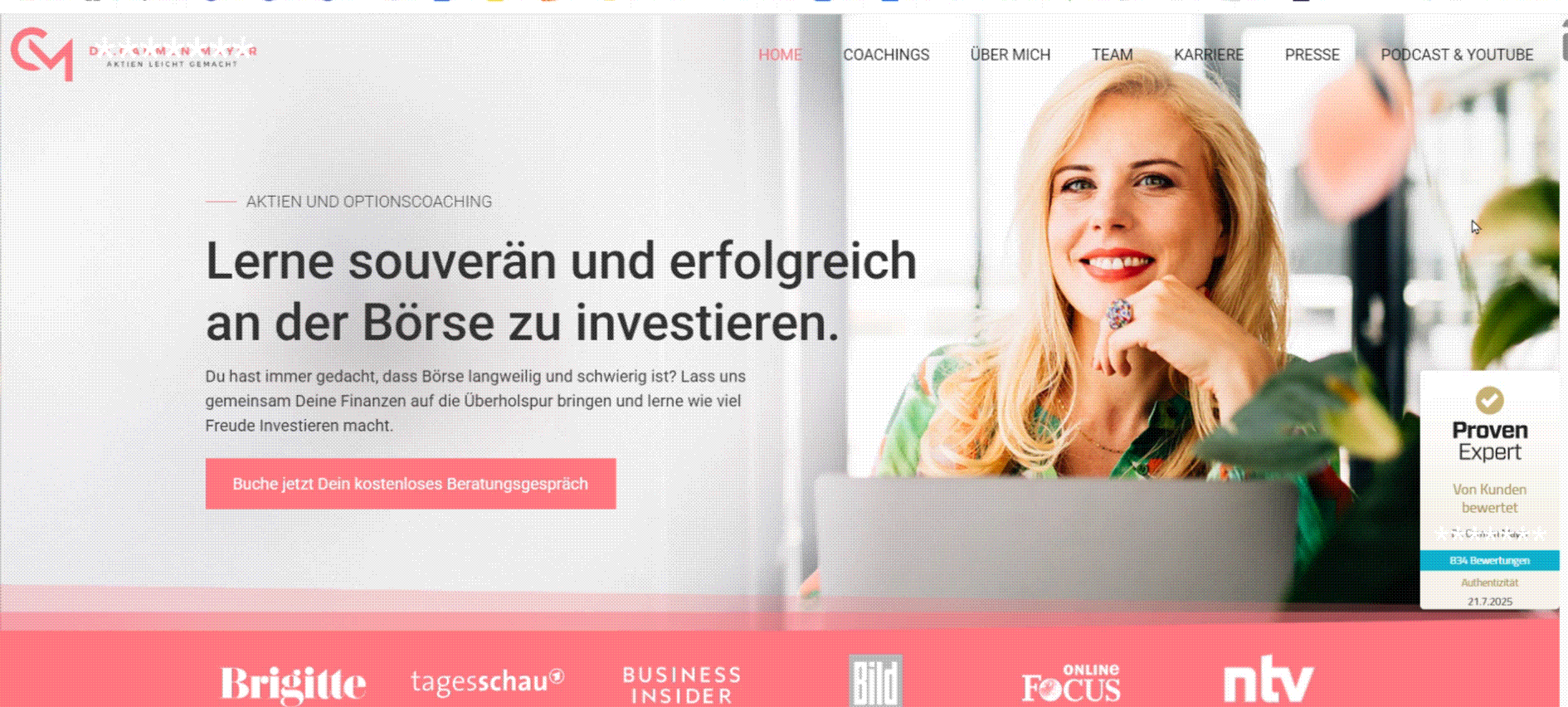 Zusätzlich absolvierte ich eines der exklusivsten deutschsprachigen VIP-Coachings zum Webdesigner.